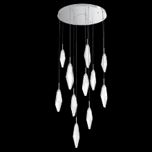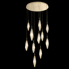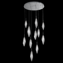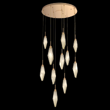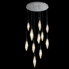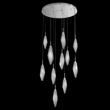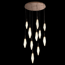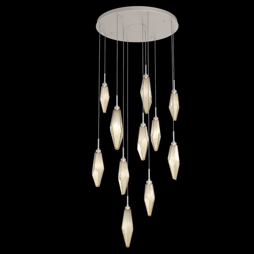 Rock Crystal Round Multi - Port - Metallic Beige Silver - Chilled Blown Glass - Bronze - Cloth Braided Cord - LED - 2700K