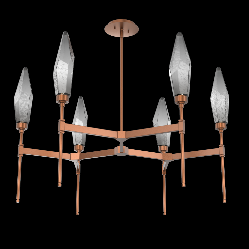 Rock Crystal Round Chandelier - 37 - Burnished Bronze - Chilled Blown Glass - Smoke - Threaded Rod (24,12 (2x),6,3) - LED - 3000K