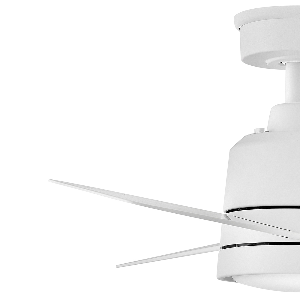 Part of the Regency Series, Chet's compact profile paired with modern design elements seamlessly enhances smaller living spaces, including breakfast nooks, porches, and home offices. Available in Matte White, Heritage Brass, and Matte Black finish options, Chet is so versatile it can be used to customize both indoor and outdoor areas. WiFi-compatible with the purchase of an additional control.