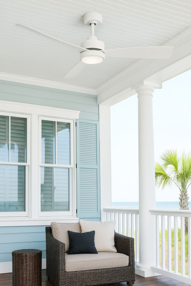 Add sleek functionality to your space with Iver, a modern, Scandinavian beauty. The slightly curved, tapered blades focus on simple, clean lines while the warm dim LED light provides a functional glow. Wet-rated and part of the Coastal Elements Collection, this family of fans features composite materials that are coated with an anti-fading finish for maximum durability inside or out. Iver is equipped with a 6-speed DC motor that is WiFi enabled and ready to connect right out of the box. Operated by the HIRO control or WiFi compatible with the Hinkley app. For lower ceilings, a flush mount kit is an accessory option for easy customization.