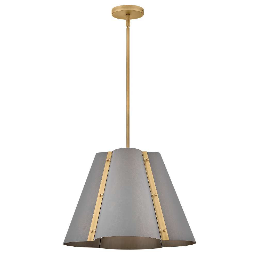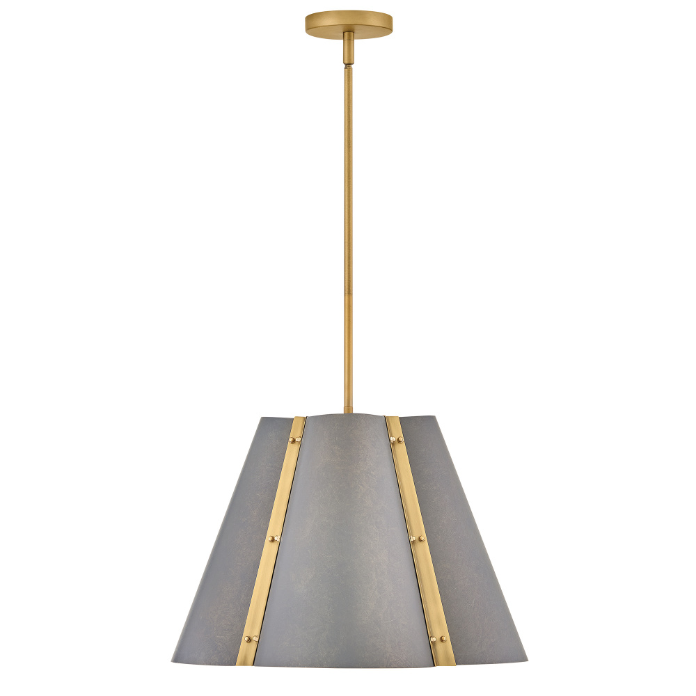Strong in style and design, Bowman’s makes a transitional statement with a tapered quatrefoil shade accented by decorative knobs along symmetrical vertical supports. Heritage Brass or Slate Bronze finishes complement any living or dining decor with polished metallic tones.