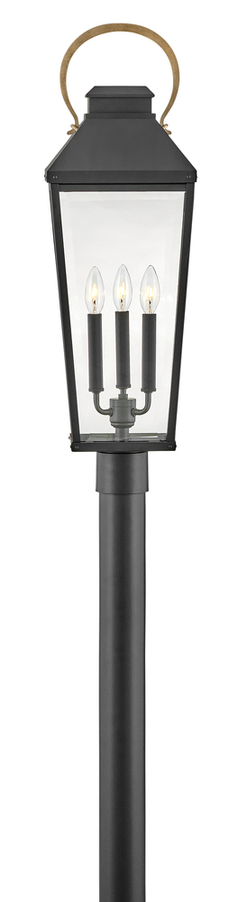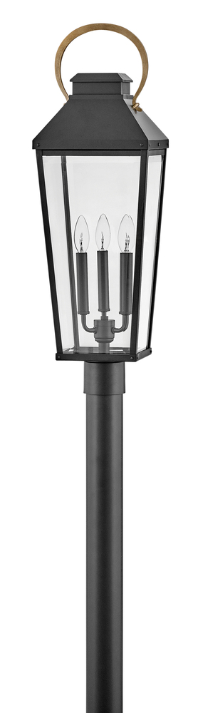 Dawson flaunts a versatile design with flair. A slightly tapered silhouette reveals simple lines that seamlessly frame clear beveled glass. Constructed of durable aluminum in Black, Dawson is complete with an oversized arching handle in a contrasting Burnished Bronze finish, reinforcing its transitional appeal.