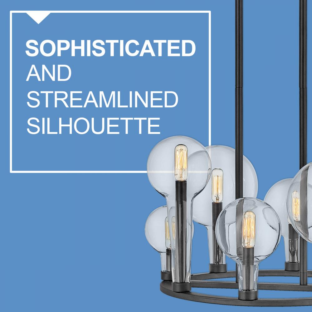 Inspired by the vintage flasks of a chemistry classroom, Alchemy is a unique statement piece. Its tapered globes instantly stand out in a variety of spaces, while the open silhouette enhances its sophisticated edge.
