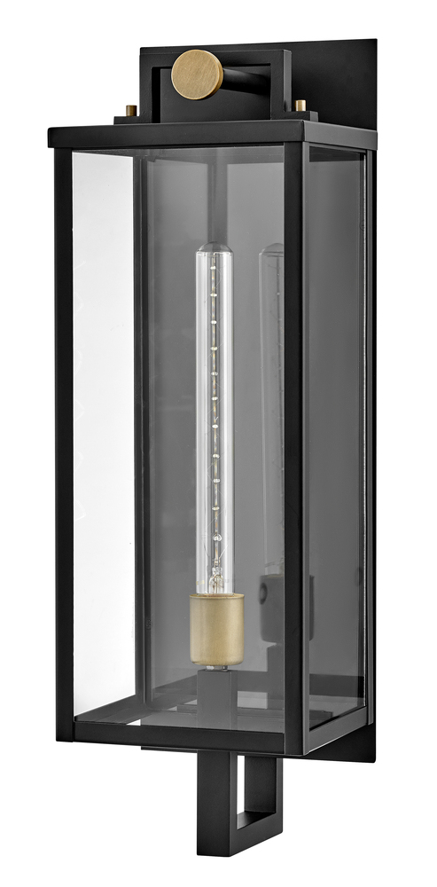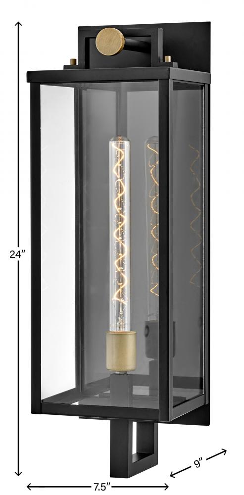 Striking and airy, Catalina breathes modern simplicity into outdoor spaces. Oversized clear glass, a unique single socket, and a two-tone Black with Burnished Bronze finish pair perfectly to present a statement-making fixture. The finishing touch is a floating effect created by the classic rectangular lantern design suspended from a top knob.