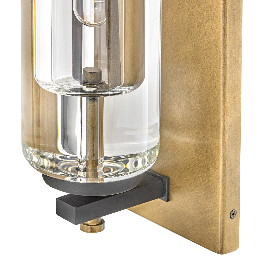 Solid and robust, Lourde’s name says it all. Heavy, layered glass cast in soft cylindrical shapes creates captivating reflections and refractions to illuminate any outdoor or indoor space with a warm glow. The modern, industrial details paired with the Black and Heritage Brass finishes make a bold statement among any aesthetic.
