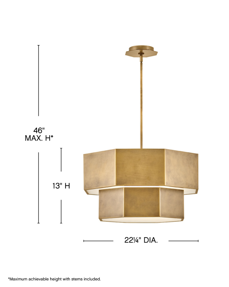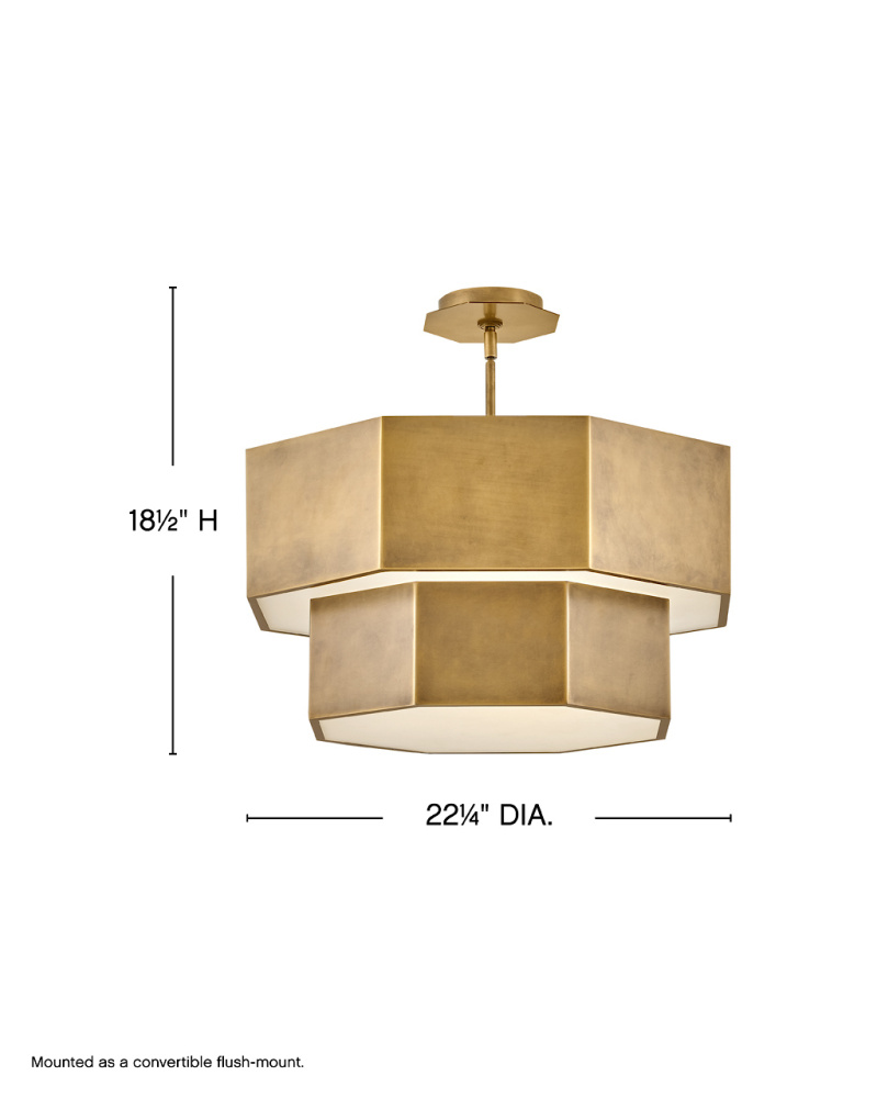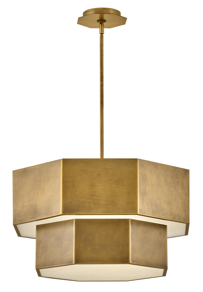 View the many sides of Facet. Interesting angles combine with bold metal features to create an edgy and contemporary profile that is unpretentious yet unforgettable. Hexagonal etched glass is showcased by Heritage Brass or Black Oxide finishes.