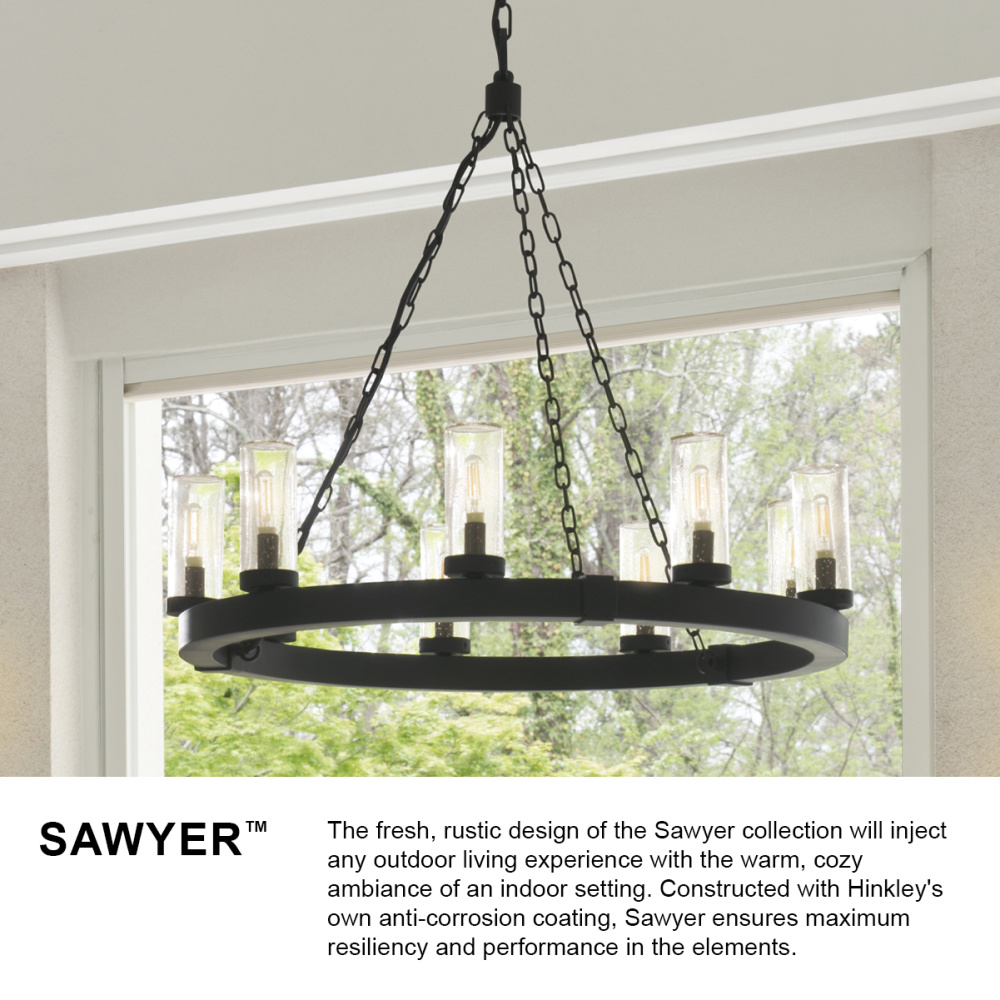 The fresh, rustic design of the Sawyer collection will inject any outdoor living experience with the warm, cozy ambiance of an indoor setting. Constructed with Hinkley's own anti-corrosion coating, Sawyer ensures maximum resiliency and performance in the elements.