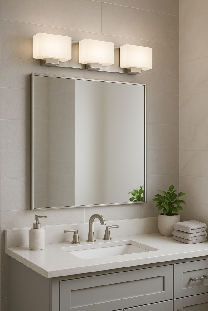 Mila's modern design captivates with sleek symmetry as the elongated shades appear to float next to angled panel transitions to create a seamless form.