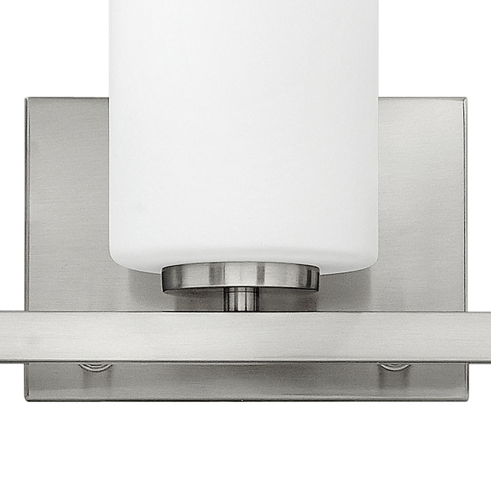 Clean and crisp, Kyra's minimalist design is anchored with a bold yet simple aesthetic. The sleek cross bar ends with a subtle curve for an element of softness. Rich finish options of Brushed Nickel or Polished Nickel complement the elegant etched opal glass.