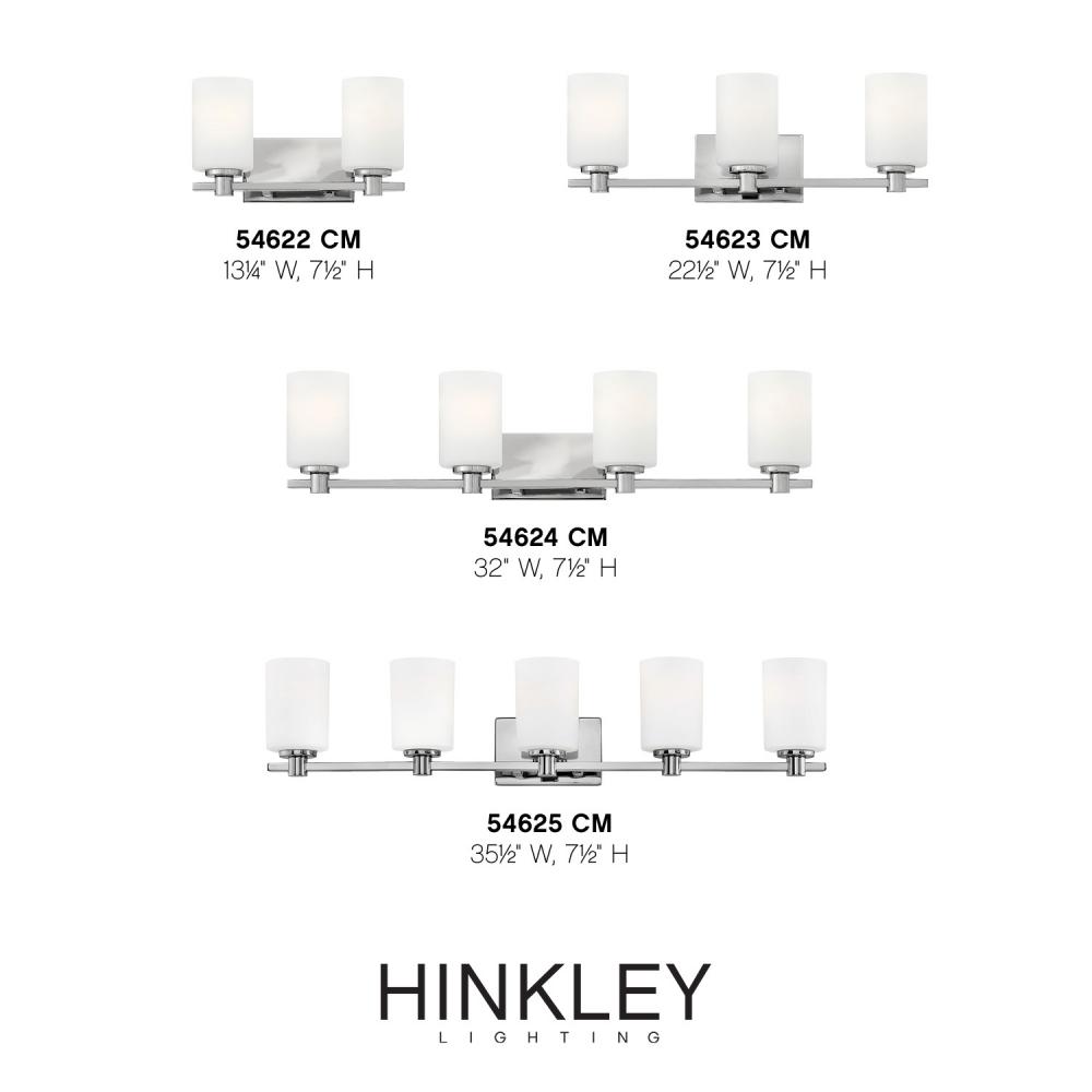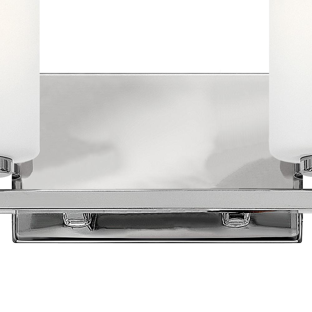 Karlie's clean design is transitional in style and will complement a variety of décor. Featuring precision die-cast cups and cylindrical, etched opal glass, it is available in Brushed Nickel and Chrome.