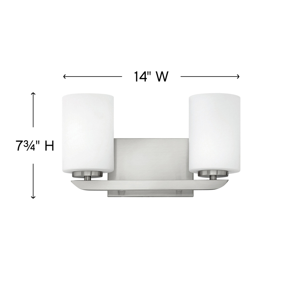 Clean and crisp, Kyra's minimalist design is anchored with a bold yet simple aesthetic. The sleek cross bar ends with a subtle curve for an element of softness. Rich finish options of Brushed Nickel or Polished Nickel complement the elegant etched opal glass.