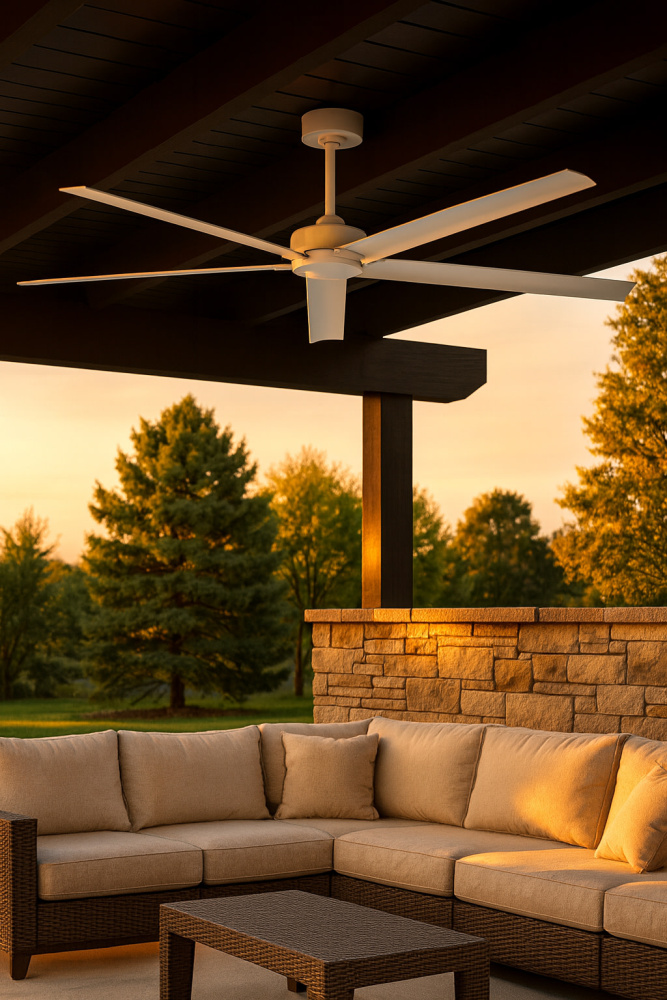 Vento's versatile wet-rated design features a solid steel construction with sturdy composite blades complemented by a chic Matte Black or Matte White finish to blend into any setting. Simple modern industrial styling is backed by a 6-speed DC motor that is WiFi enabled and ready to connect right out of the box. Operated by the HIRO control or WiFi compatible with the Hinkley App.