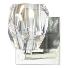 Single wall sconces are an elegant way to light the bath environment. Hand-cut and polished crystal is centered on a steel backplate, secured on a small outcropping of metal below. Available in Black, Oil Rubbed Bronze, Vintage Platinum, Soft Gold, Sterling and Modern Brass.