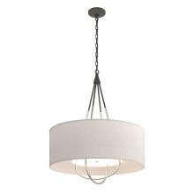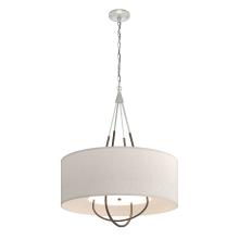 Refinement of materials and purity of line combine to make the Loop Pendant an elegant and versatile choice. Explore the many options this fixture offers—select a base finish for the canopy and chain, an accent finish for the intercrossed loops, and multiple outer shade color choices. A white inner shade gracefully diffuses the light while providing a tailored detail.