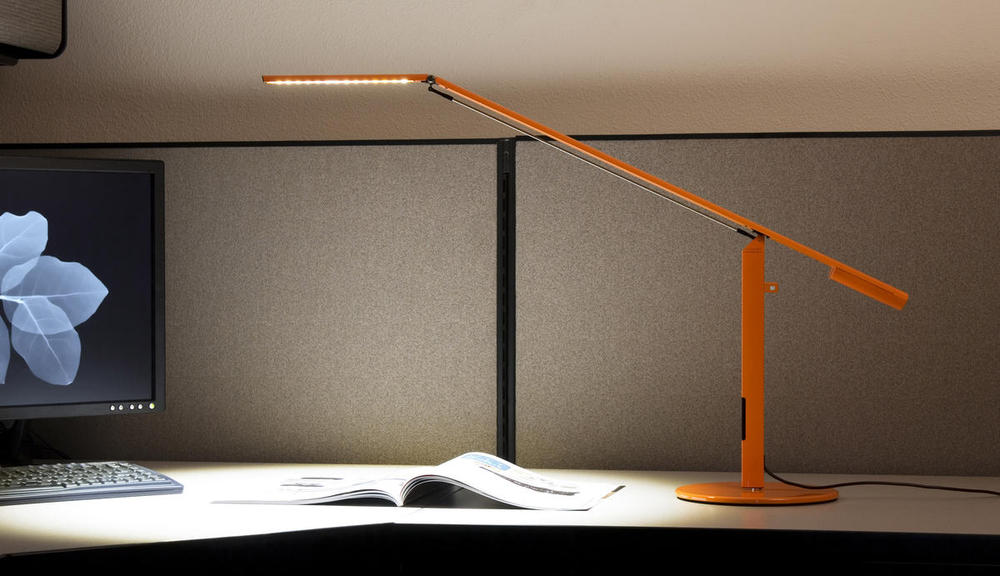 Equo Desk Lamp features a discreet counterweight design for feather-light adjustability. Equo's innovative design has won 11 international product design awards including the renowned Red Dot award. One finger is all you need to adjust the floating arm's position. The special neck joint maintains the head's tilt as the arm swings up or down. Slide your finger along the stem's touchstrip to control brightness and power. The luminaire head is rotatable up to 180 degrees. Compatible with optional occupancy sensor and multiple mounting options.