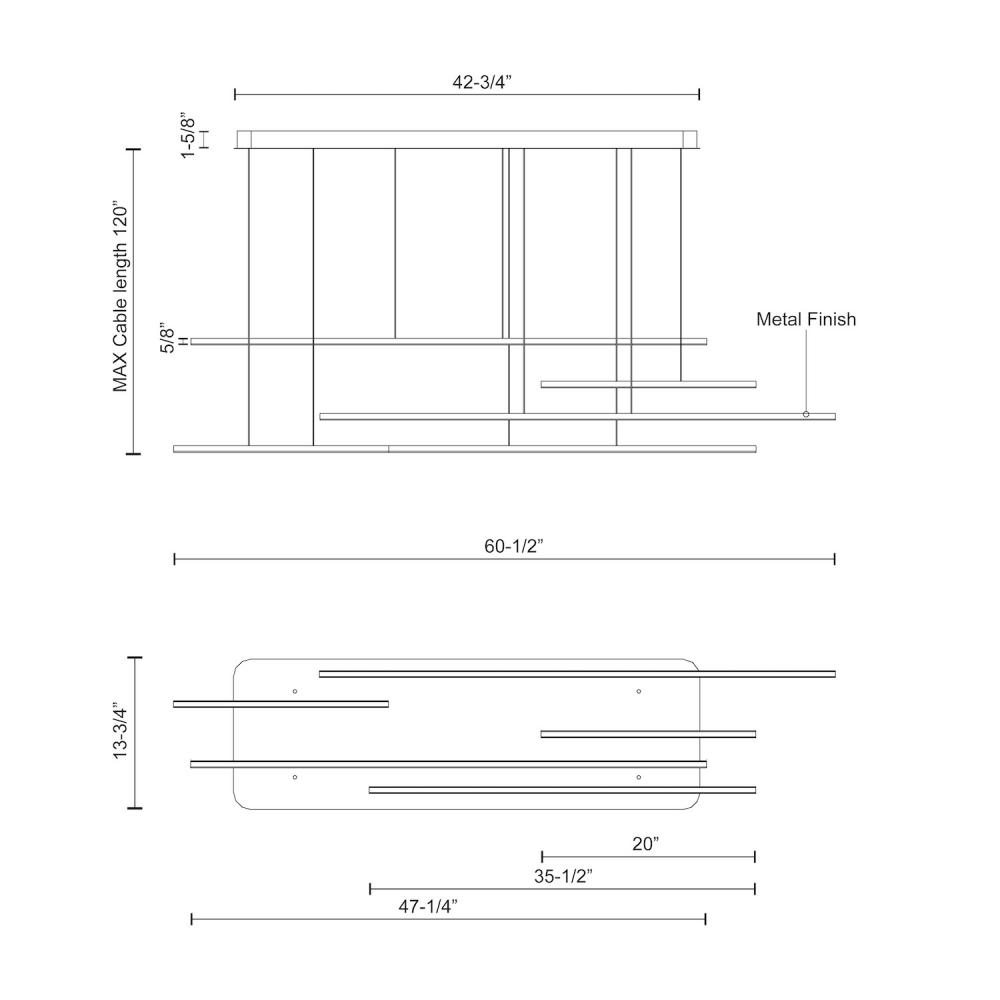 Canopy: 42.75 L x 13.75 W x 1.63 H