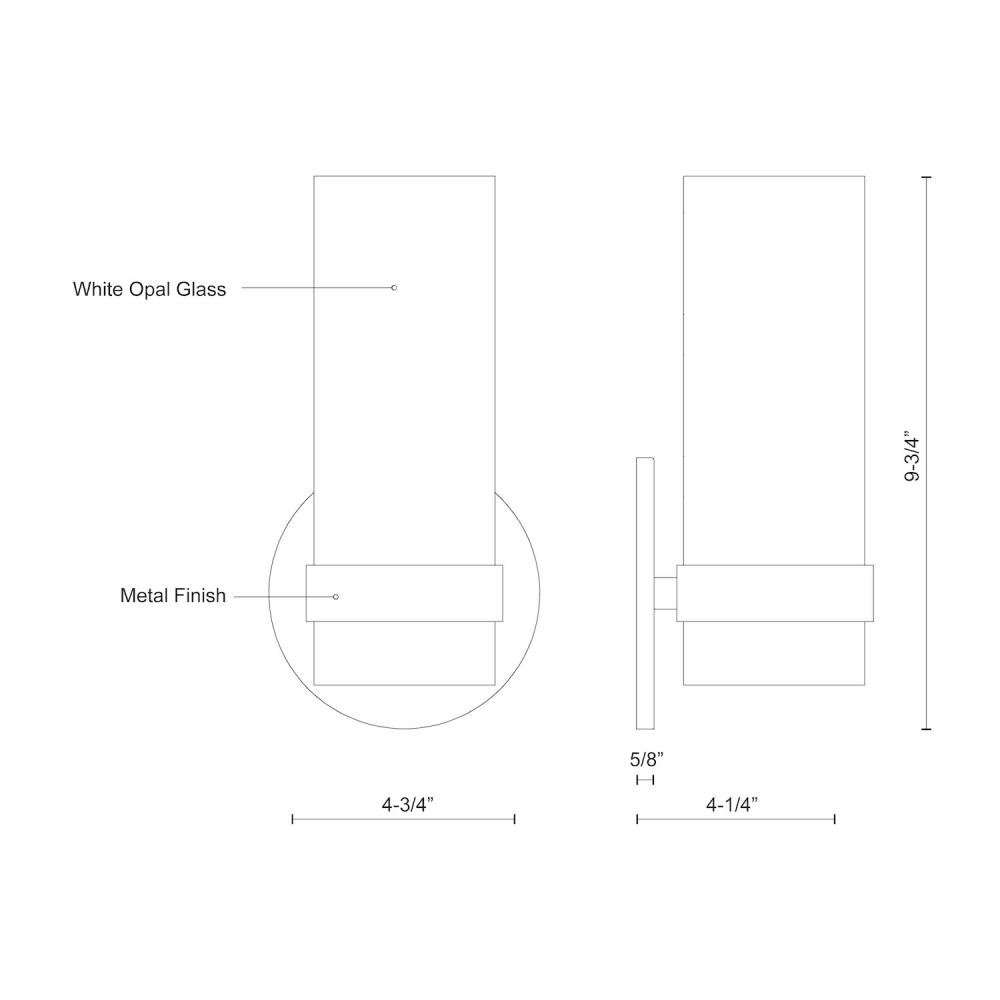 Single lamp pendant with cylinder white opal glass with metal details in brushed nickel.