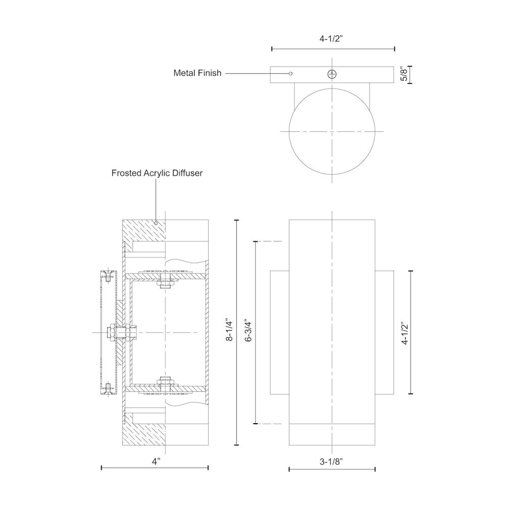 LED cylinder shaped updown wall sconce with clear acrylic discs. Metal details in black, brushed nickel or chrome finish, and is equipped with our powerful 12V AC LED technology,