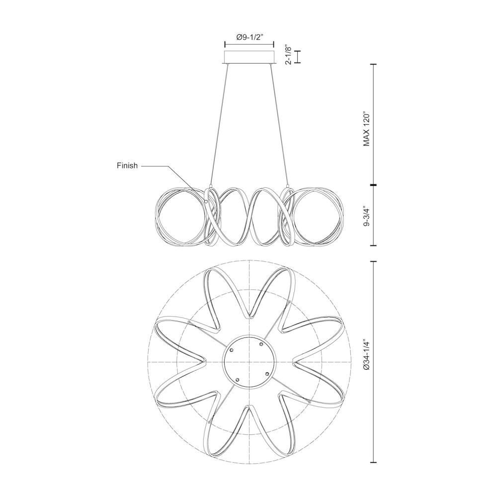 A looping radiant line casts light across space in a continuous helical path. The Synergy series is characterized by the rolled rectangular extrusion, which emits soft light through the silicon opal lens. Configured in both linear and ring arrangements, the arcing aluminum allows the curated finishes to be visible at every angle.