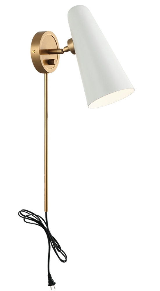 The clean design of this series is inspired by a retro spotlight but with a modern look and finish. The Blink series comes in 2 finishes combinations: Aged Gold Brass with White and Aged Gold Brass with Black. Featuring a dimmable light and adjustable shade, Blink will add an additional modern element.