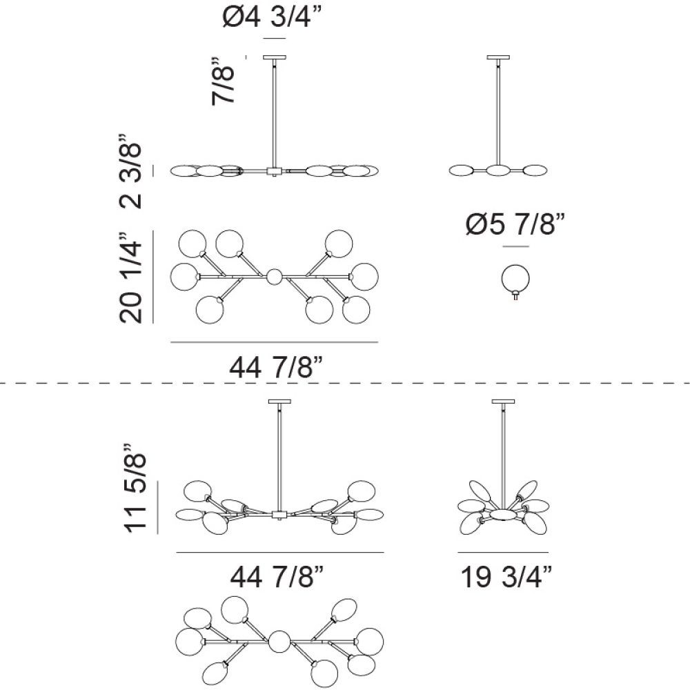 Peon A modern masterpiece with timeless warmth, this chandelier introduces contemporary sophistication through its radiant, pebble-shaped opal glass shades arranged in a striking starburst formation. The larger glass elements echo the sculptural beauty of our Hydrangea series. Each opal diffuser casts a soft, inviting glow, balancing ambience with artistic presence. Available in Champagne Gold or Matte Black finishes. LIGHTBULBS NOT INCLUDED
