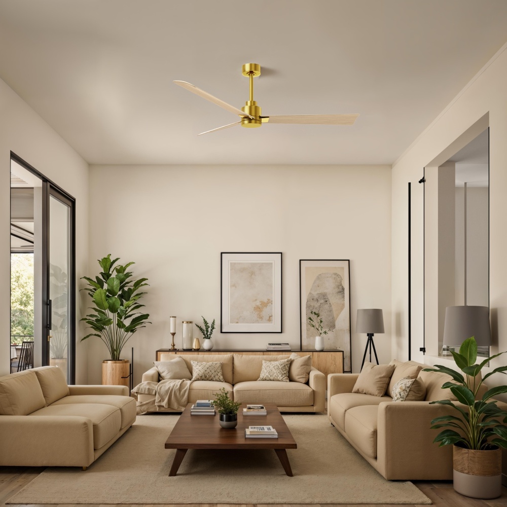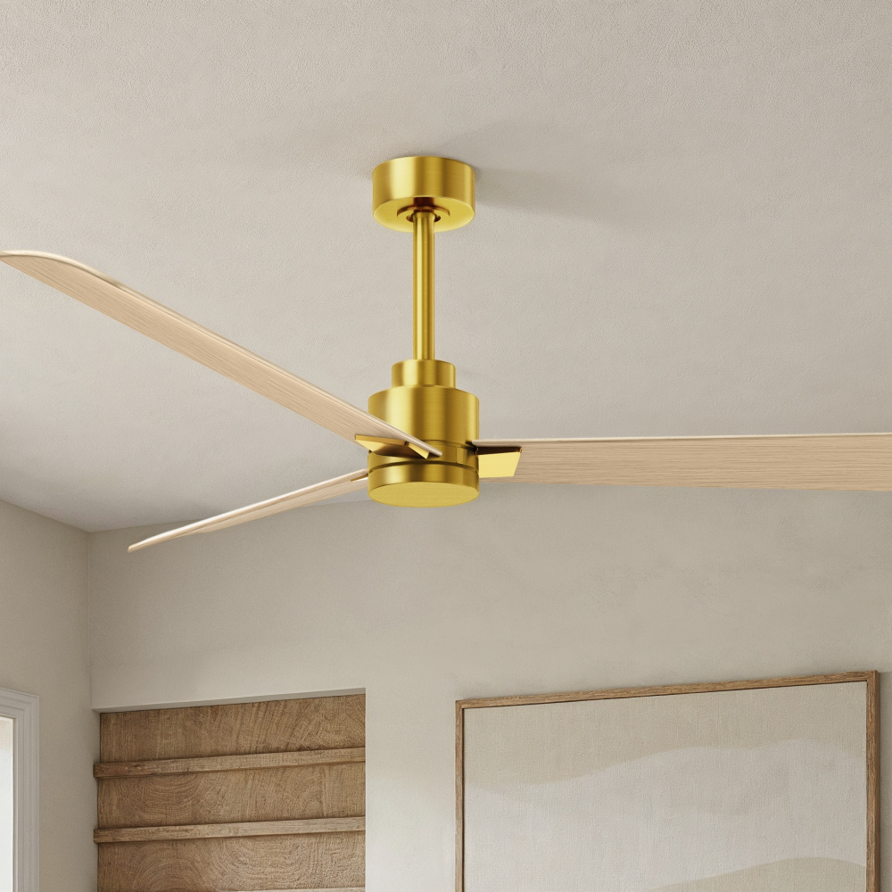 Alessandra - 56" Three Blade Transitional Ceiling Fan - Brushed Brass Finish - Light Maple Blade