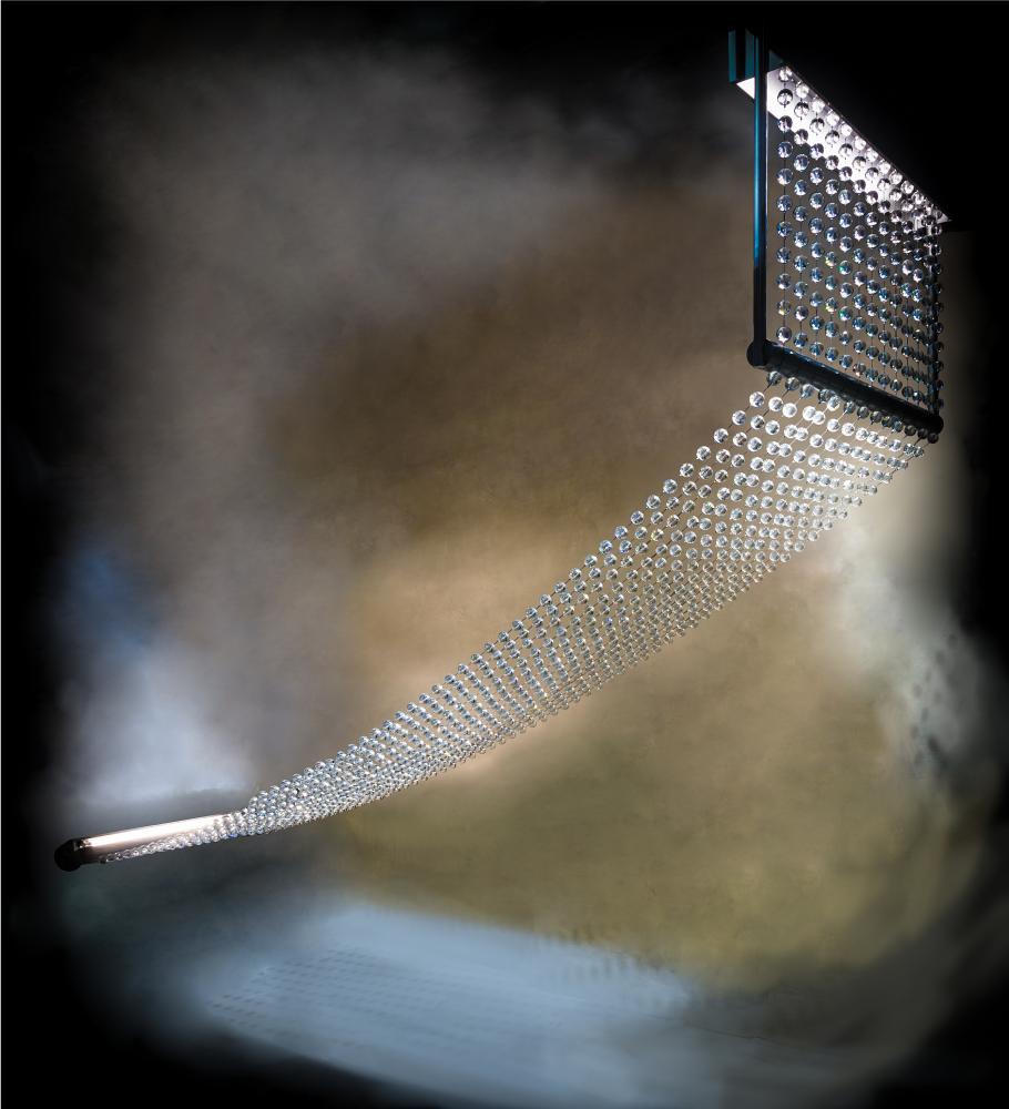 Innovative design meets sophisticated elegance with crystal magnificence for traditional; modern and contemporary settings. Designed like a brilliant curtain that evokes a beautiful rainbow of colors; ceiling and wall mounted hardware are adorned with glamorous layers of Hand-cut Crystal Orbs. The sturdy frame and hardware are offered in a stunning Nickel powdercoat finish. Customer supplied Bi-Pin T8 Fluorescent Tubes create an intriguing interplay of ambient illumination and shine through for a dazzling display and sparkle. Handcrafted in Yorkville; NY; this shimmering upscale fixture is offered in custom sizes; designs and finishes and with immable energy efficient lamping options. UL and cUL listed for dry and damp locations.