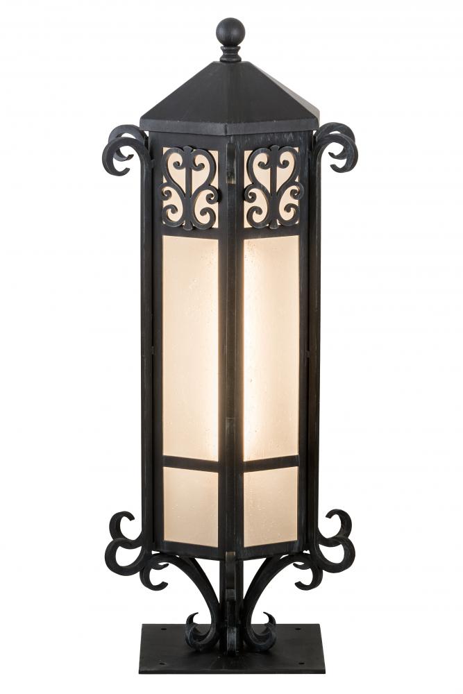 Designed to create a rich; luxurious look; this high-styled Pier Mount features a Frosted Seeded Glass diffuser which is enhanced with a solid frame; scrollwork and decorative accents in an Antique Iron Gate finish. This unique interior/exterior fixture can be mounted directly on decks; piers and decorative columns. Custom crafted in the USA; the lantern is offered in custom sizes; finishes and styles; as well as energy efficient lamping options. The 28-inch tall fixture is UL and cUL listed for dry; damp and wet locations.