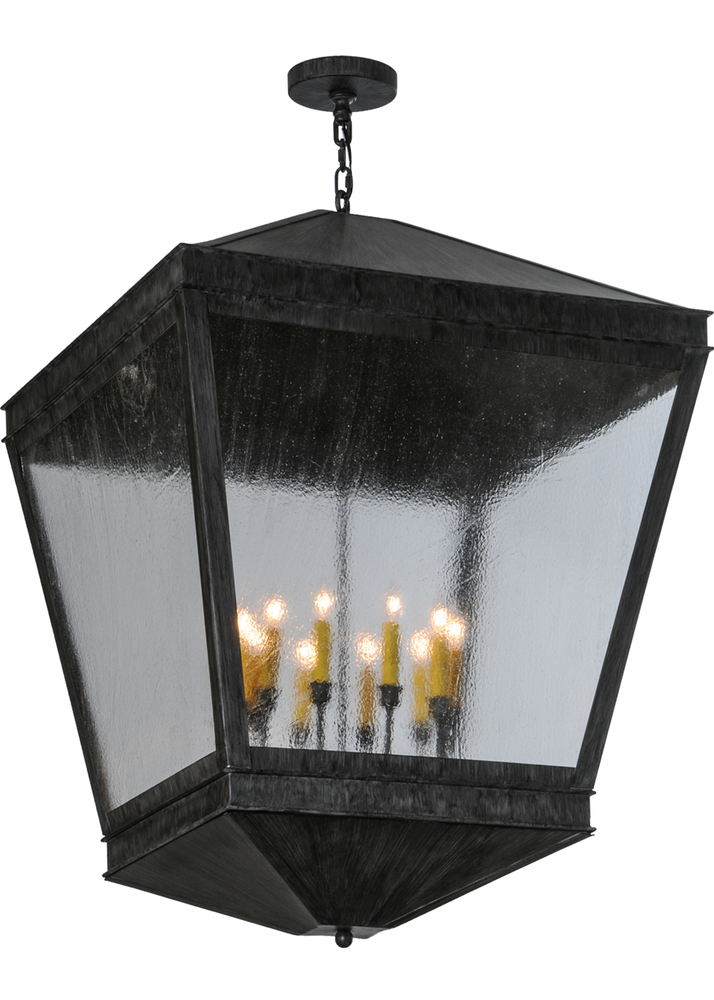 Expert craftsmanship and a distinctive elegance come to light with a stunning classic lantern design that entices all to see. The exquisite Rainstone Idalight lens reveals 10 Ivory faux candlelights. This indoor/outdoor pendant is enhanced with an Antique Iron Gate finish. The overall height ranges from 47 to 142 inches as the chain length can be easily adjusted in the field to accommodate your specific lighting application needs. Custom crafted by highly skilled artisans in our 180;000 square foot manufacturing facility in Yorkville; New York. Lantern styles; metal finishes and fixture sizes can be customized to your needs. UL and cUL listed for dry; damp and wet locations.