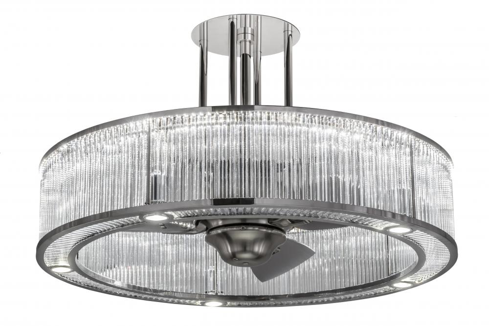 A fan-tastic energy efficient decorating innovation for a home; retail or hospitality location; this masterfully designed and custom crafted Chandel-Air adds drama and sophistication paired with distinctive custom lighting and fan technology to any room. Marquee Gural is a unique modern marvel featuring Clear Glass with clean prismatic lines that evoke a dramatic dimensional illusion and textural look. The diffuser is complemented with architecturally styled trim and hardware offered in a Polished Stainless Steel finish. Integral LEDs evoke decorative illumination that bring out the beauty of the glass while five 5-watt LED downlights deliver functional task lighting on surfaces below. Handcrafted in Yorkville; NY by Meyda artisans; this Chandel-Air creates a windchill to keep the space cool in the summer; and is reversed in the winter to push down hot air and maintain warmth. Dimmable lamping options; as well as custom sizes; styles and colors; are available. The fixture is UL and cU