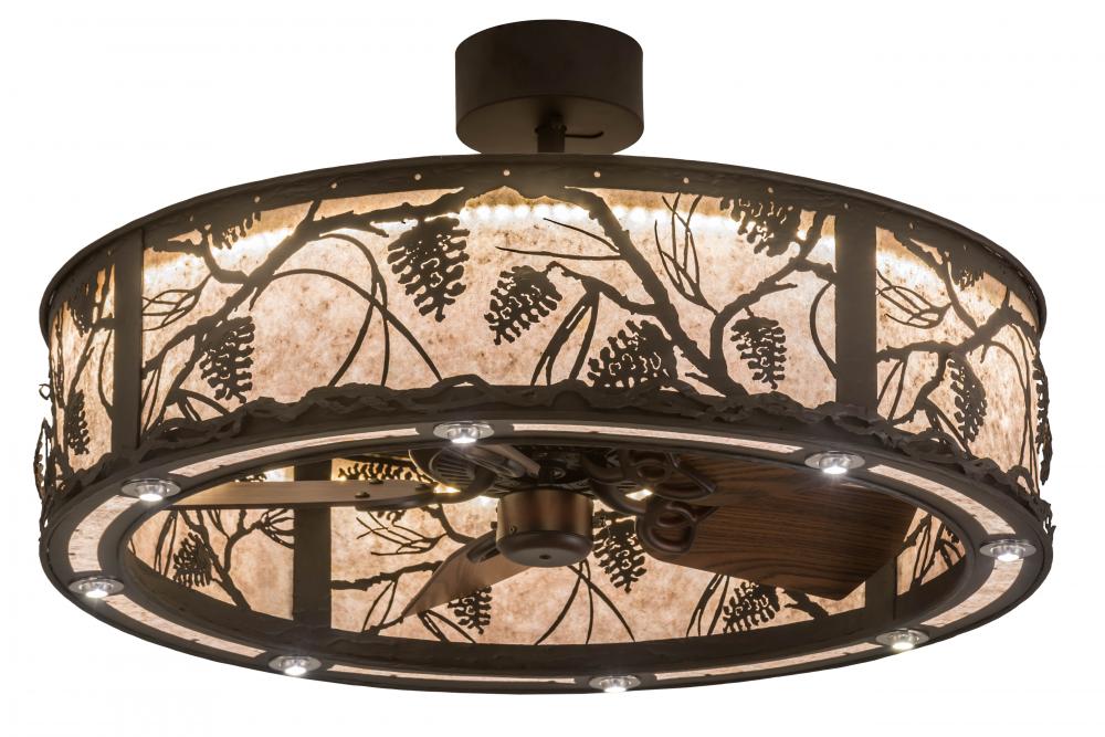 Listen closely. You can almost hear the soft whisper of the pine branches as they dance in the wind through this magnificent creation; which combines a stunning custom nature inspired lighting design with energy efficient fan technologies. Dimmable integral LEDs bring out the beauty of Silver Mica while eight 3-watt dimmable LED downlights deliver functional illumination on surfaces below as gentle breezes are produced by the fan spinning quietly in the center. Decorative accents and hardware are featured in an Oil Rubbed Bronze finish and handcrafted by Meyda Artisans in the USA. In the summer; the fan pushes down a windchill that circulates to keep the space cool and comfortable. In winter; the fan is reversed to pull the room air up towards the ceiling and force the warm air back down and circulate to create warmth. Custom sizes; styles; colors and dimmable lamping options are available. UL and cUL listed for damp and dry locations.