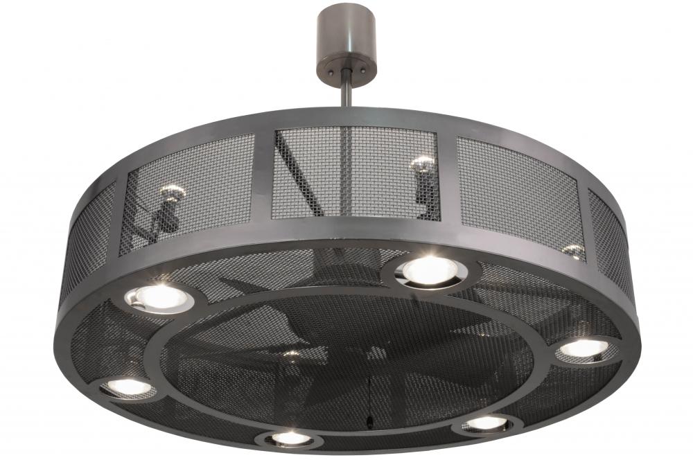Handsome styling meets engineering innovation. This fan-tastic; energy-efficient decorating idea for a home; retail or hospitality location features a custom crafted Chandel-Air design with a caged frame and mesh. The solid steel hardware and grill is featured in a Bronze Metallic finish. The modern marvel combines a ceiling fan within a handsome lighting fixture that features LED lamps provided by the customer; 6 LED downlights for task lighting and 6 LED uplights for ambient lighting. Handcrafted in Yorkville; New York. This energy-saving Chandel-Air creates a windchill to keep the space cool in the summer; and is reversed in the winter to push down hot air and maintain warmth.