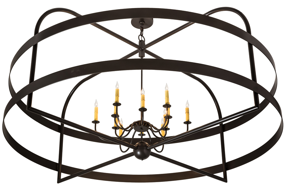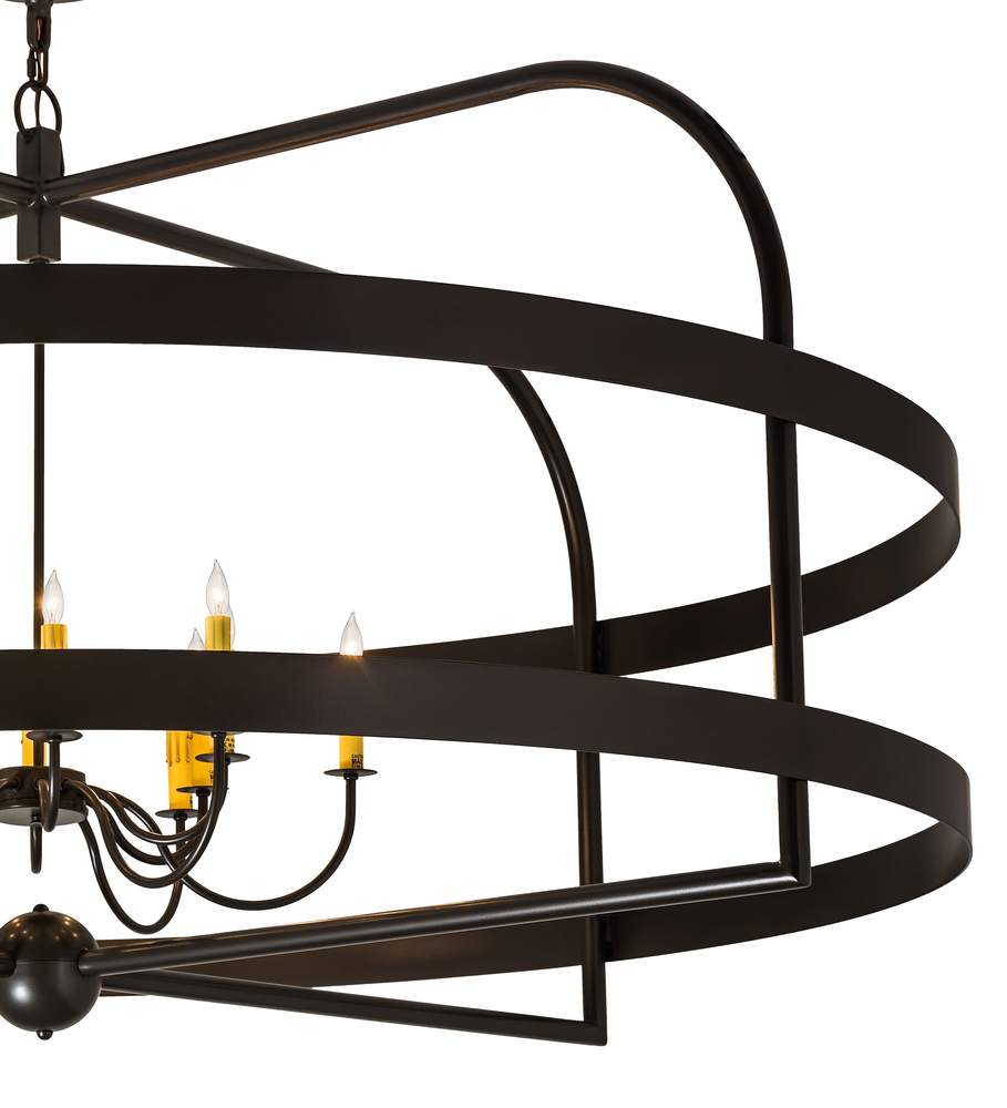 Inspired by the tight engineering of a gyroscope with the elegance of a ballroom; an exquisite candelabra featuring 12 Ivory faux candlelights are highlighted within this sophisticated architectural structure. Two Timeless Bronze finished rings encircle a decorative inner frame that surrounds the luminaires for a unique look. Aldari is ideal for illuminating ballrooms; lobbies; foyers; and a variety of other large rooms in residential and commercial settings. Handcrafted in the USA; this fixture is available in custom sizes; styles and colors; as well as dimmable energy efficient lamping options. The chandelier is UL and cUL listed for damp and dry locations.