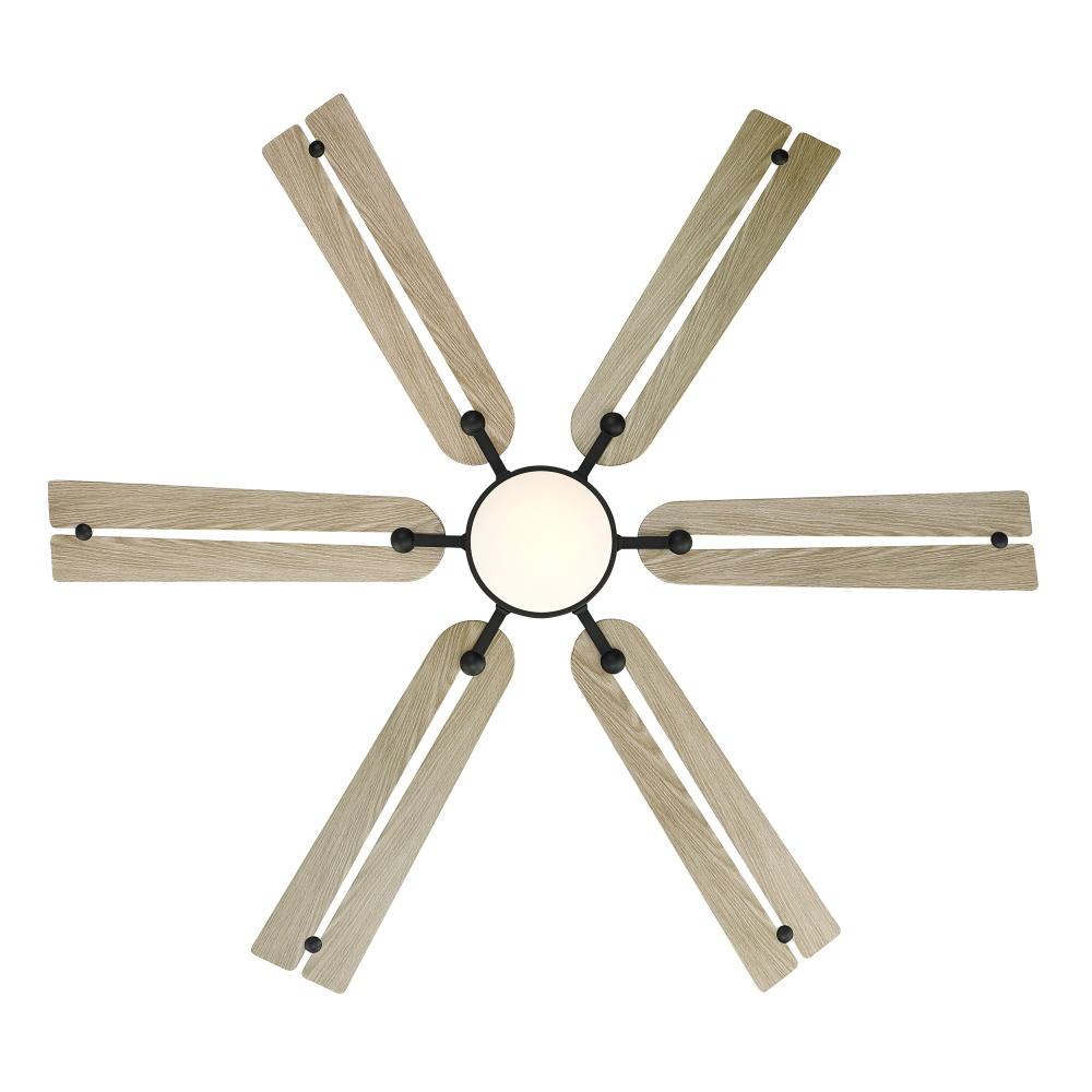 56" 6-Blade 5CCT LED Smart Ceiling Fan - Dark Bronze and Ashwood Blades with Etched Opal Glass