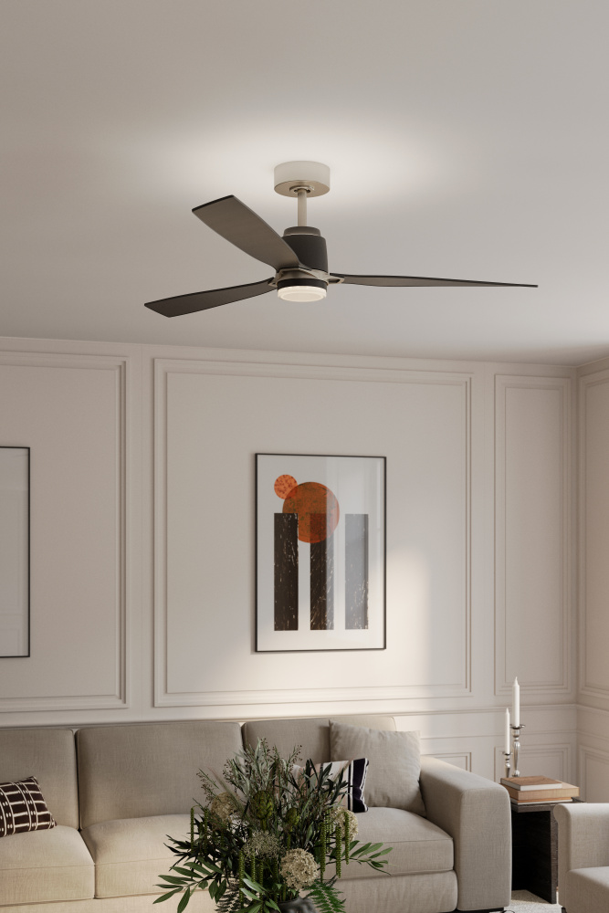 This fan features an 30-watt integrated LED light kit with selectable color temperature (CCT) for tailored illumination.