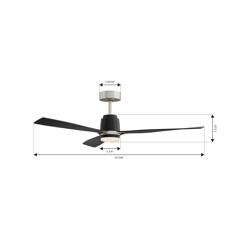 53" 3-Blade 5CCT LED Smart Ceiling Fan - Brushed Nickel and Coal Blades with Clear Acrylic Lens