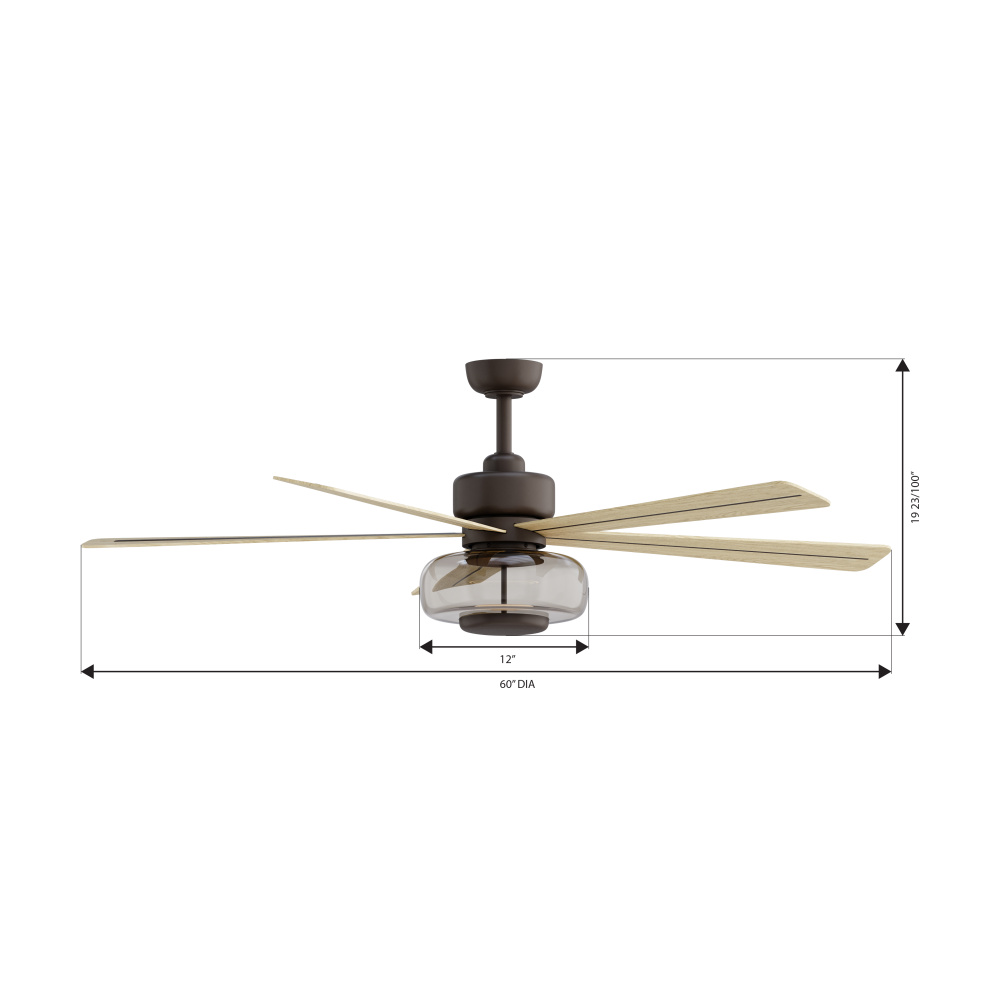 60" 6-Blade 5CCT LED Smart Ceiling Fan - Dark Bronze and White Oak Blades with Brown Smoked Glass