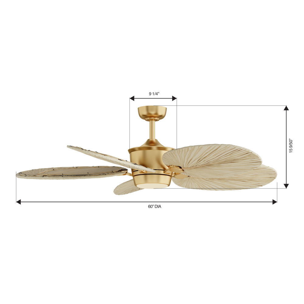 60" 5-Blade 5CCT LED Smart Ceiling Fan - Heritage Brass and Natural Palm Blades with Etched Opal Lens