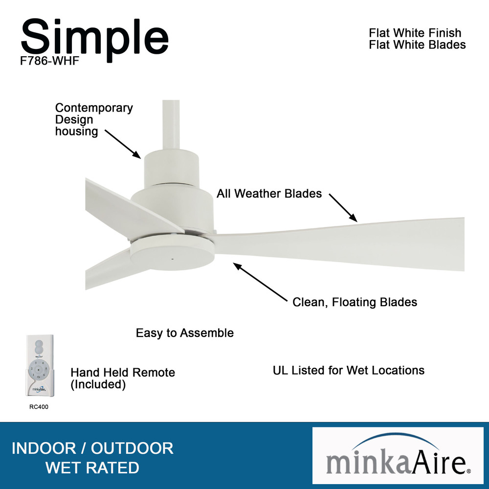 44" 3-Blade Ceiling Fan in a Flat White Finish with Flat White BladesOptional Custom LED Light Kit Available K9787L
