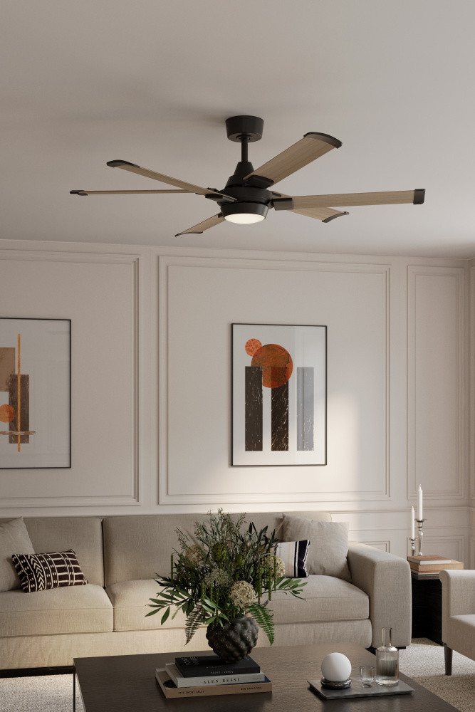 The Soarin ceiling fan delivers powerful, efficient airflow with a clean, transitional presence.