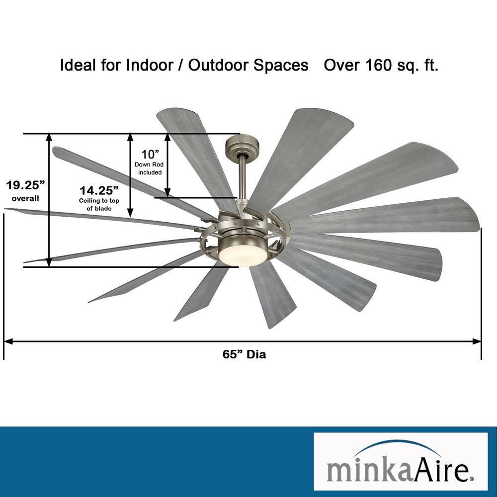65" 12-Blade LED Ceiling Fan in a Brushed Steel Finish with Ashwood Blades and Etched Lens