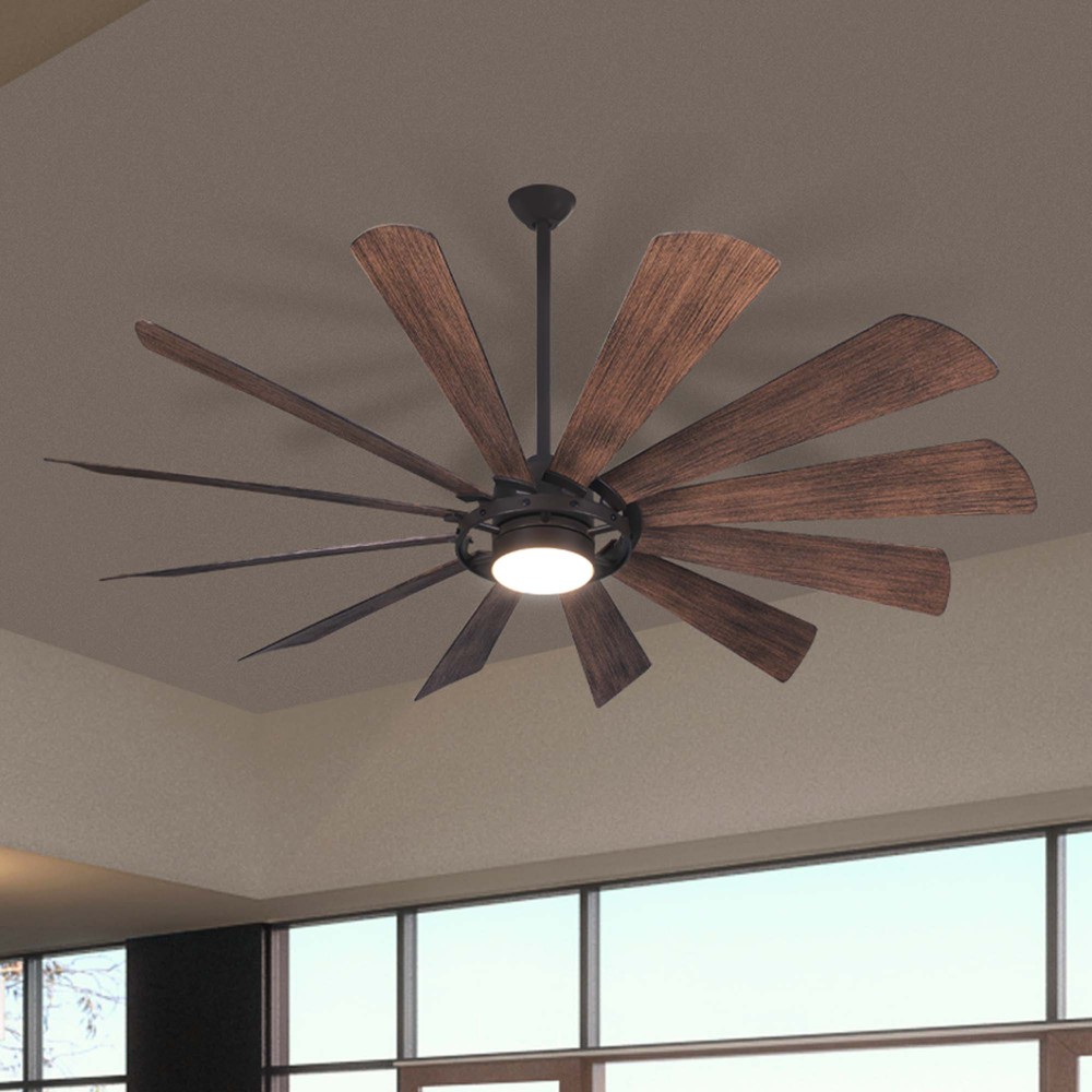 65" 12-Blade LED Ceiling Fan in a Oil Rubbed Bronze Finish with Seasoned Wood Finish Blades and Etched Lens