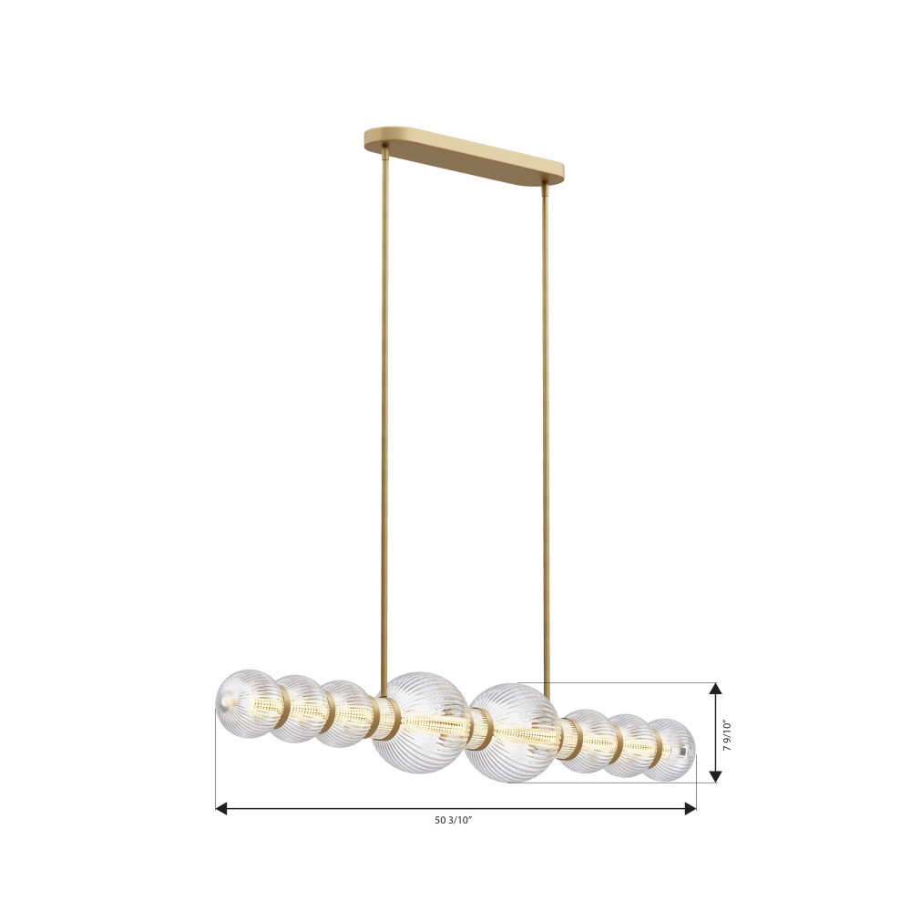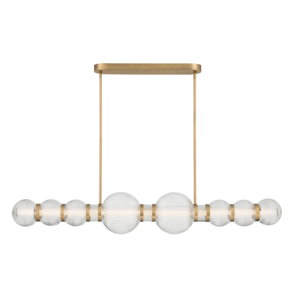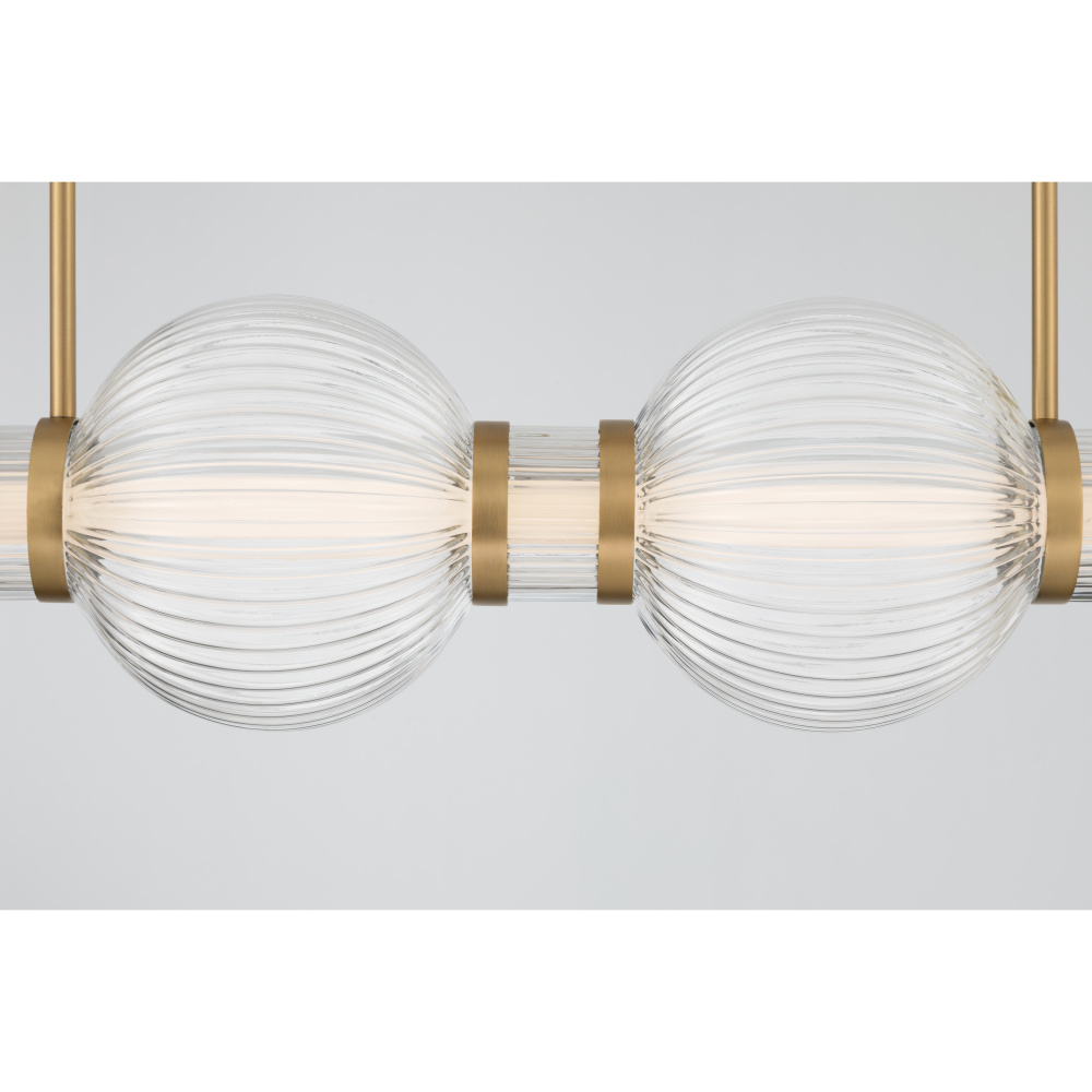 LED Linear Chandelier - Legacy Brass and Clear Ribbed Glass