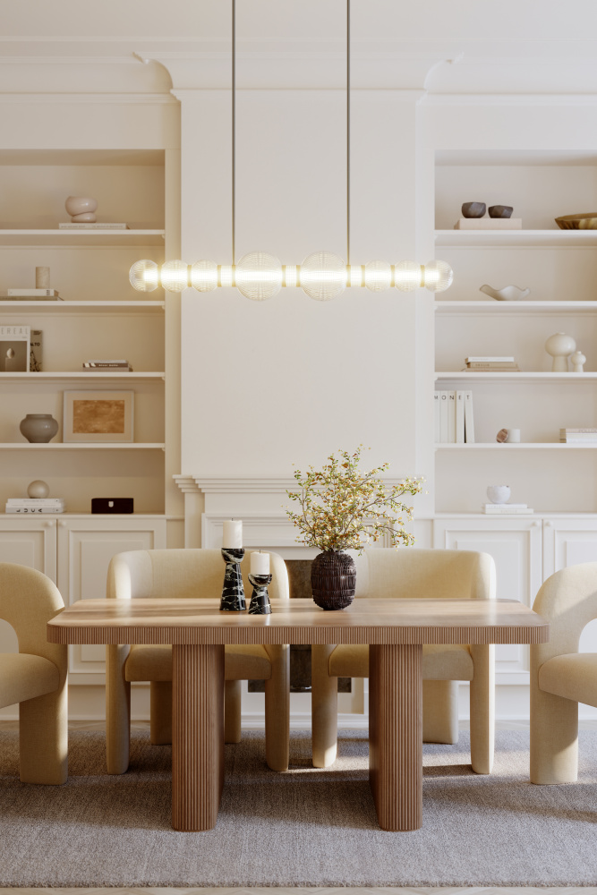 The Cordel chandelier blends modern lines with warm, inviting illumination.