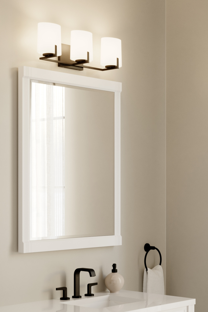 The Mirelle bath light blends modern lines with warm, inviting illumination.