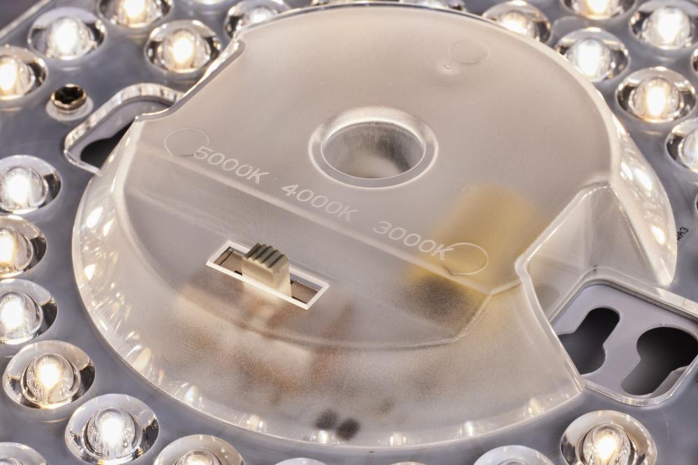 Uses 20 watt integrated LED with CCT selectable in warm, soft, and cool white with lumens ranging from 1230-1330