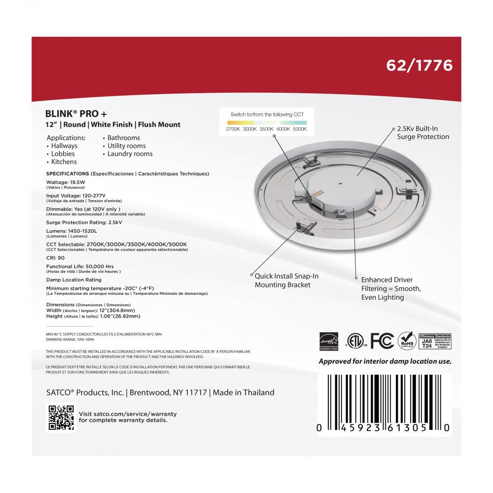 Blink Pro Plus; 19.5 Watt; 12 in.; Surface Mount LED; CCT Selectable; 90 CRI; White Finish; 120/277 Volt; Round Shape