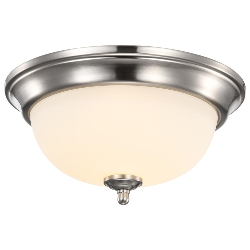 Center Lock 13 Inch LED Flush Mount; 19 Watt; 3000K; Brushed Nickel Finish; Frosted Glass