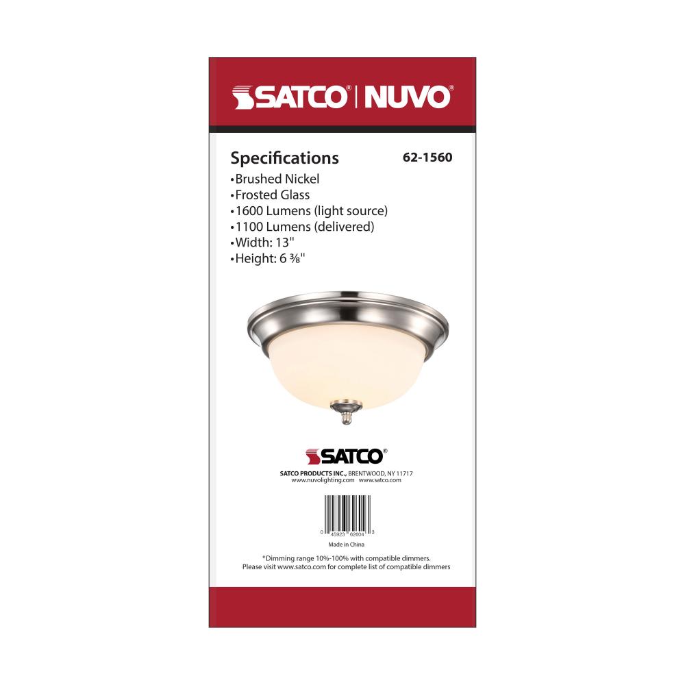 SATCO NUVO'S 62-1560 LED 19 watt, 13-inch flush mount offers the perfect blend of integrated LED technology and utility-style lighting. This simple flush mount illuminates a dark stairwell, hallway or laundry room to name a few applications. The froste