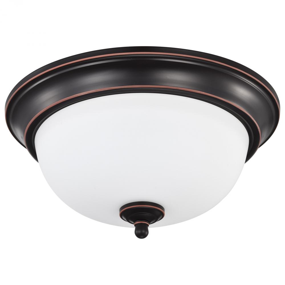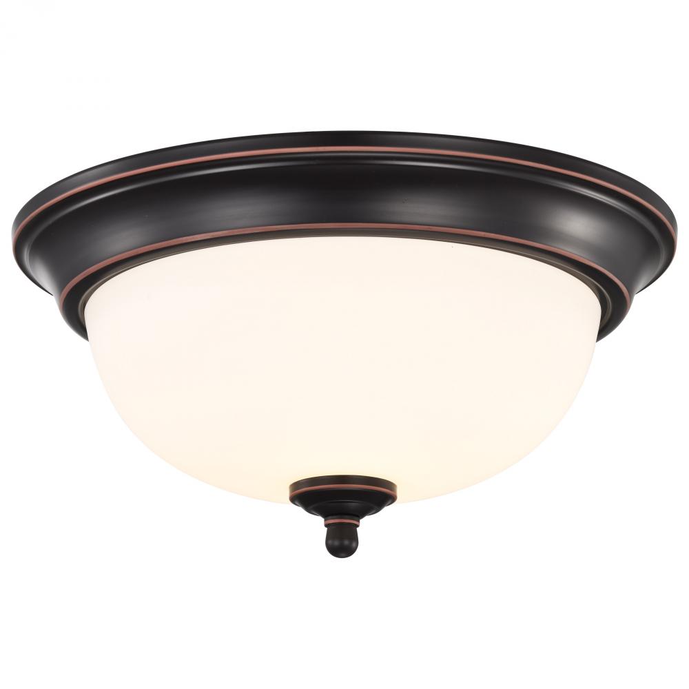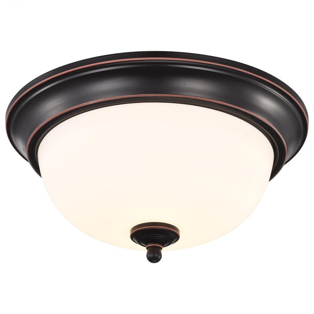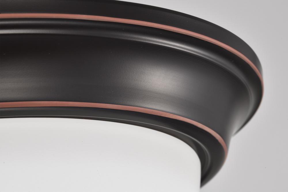 Center Lock 13 Inch LED Flush Mount; 19 Watt; 3000K; Mahogany Bronze Finish; Frosted Glass